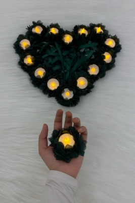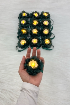 Yeşil Ledli Kına El Mumu, Düğün, Nedime, Bride, Sünnet, Led Işıklı, Tealight Mum Pilli 12 Adet
