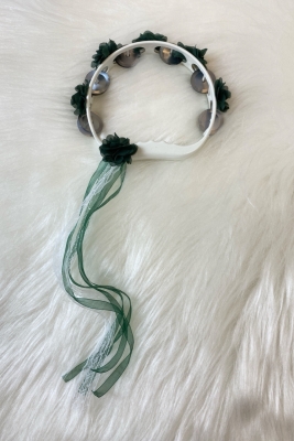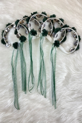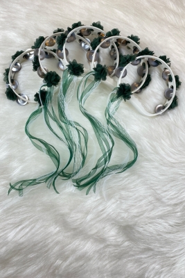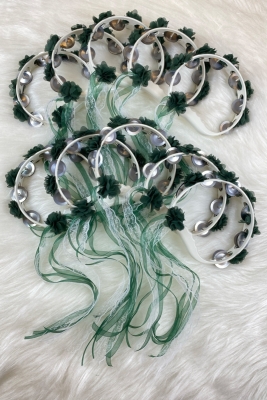 Yeşil Süslü Gelin Nedime Kına Gecesi Düğün Sünnet Tefi, Üç Boyut Lazer Çiçek Ve Kurdele Süslü 5 Adet