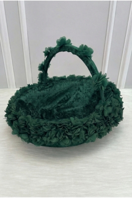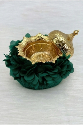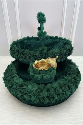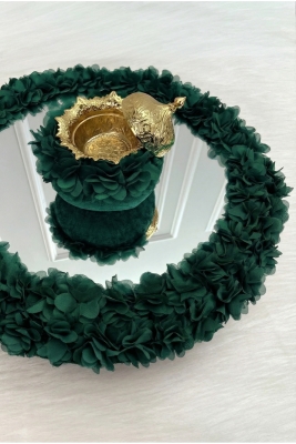 Zümrüt Yeşili Çiçekli Aynalı Kadife Kına Gecesi Tepsi Sepet Gelin Takımı, Nişan Nikah Düğün Sünnet