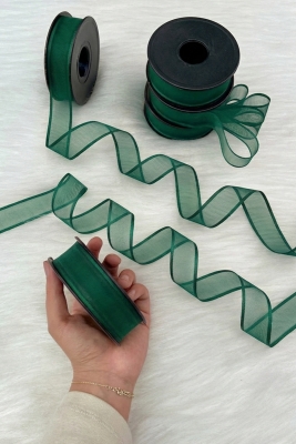 Zümrüt Yeşili Şifon Kurdele 2,5 cm 20 mt, Gelin, Damat, Bohça, Nişan, Çeyiz, Özel Gün, Hediye, Düğün